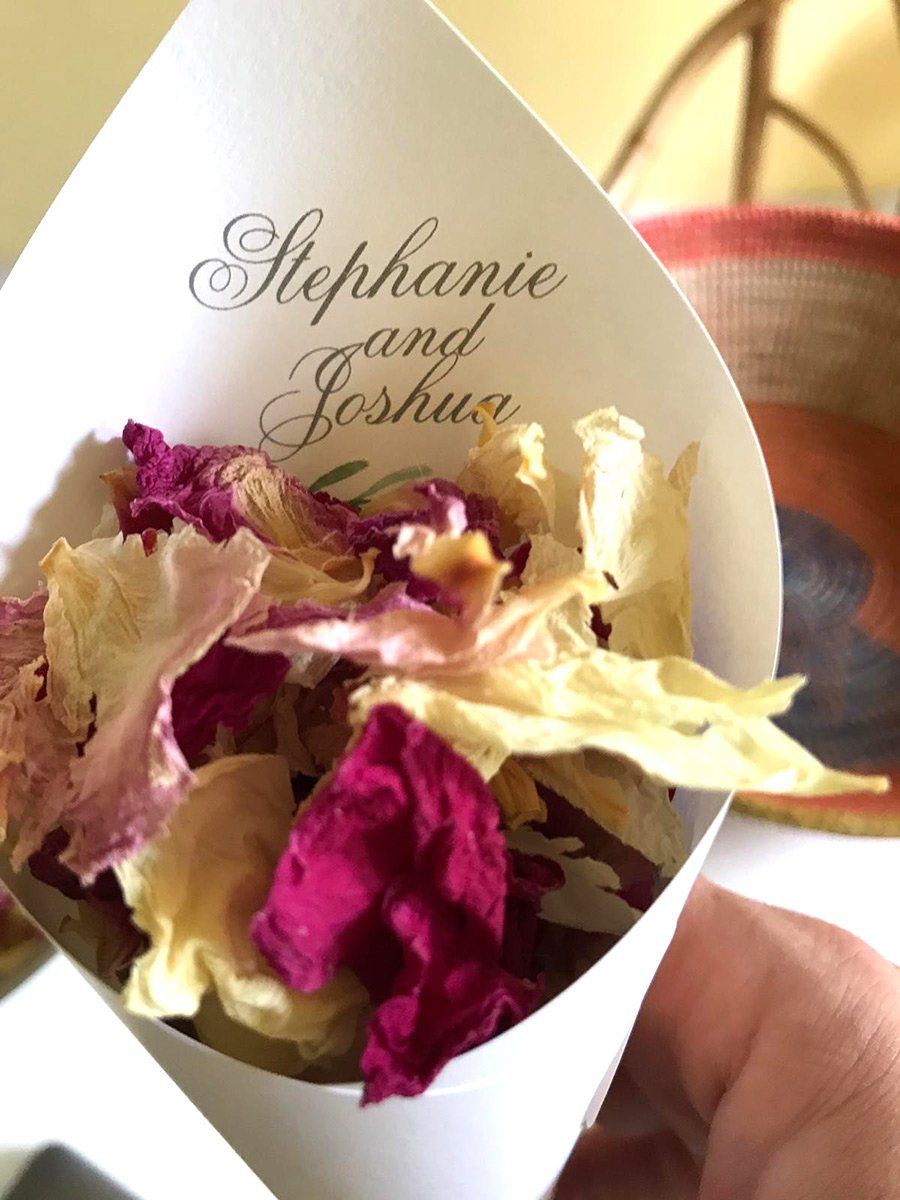 Néanmoins, l’intervention du numérique lors d’un mariage exige un petit effort visuel, niveau décoration. En effet, si l’on décide de retransmettre son mariage via Zoom ou Skype, on ne peut offrir qu’une vision limitée de l’événement et de son cadre. Aussi, il est important de choisir des éléments de décoration singuliers. Et pour attirer l’attention de vos convives virtuelles, quoi de mieux que des couleurs franches ? Cet ajout de couleurs passe bien évidemment par le choix des fleurs ! Qu’il s’agisse des compositions ornant les tables, ou des confettis lancés aux mariés, mieux vaut opter pour des tonalités vives et des pétales larges. Ils se verront davantage en vidéo et permettront ainsi aux invités de vivre pleinement l’événement. Aussi nos pétales séchés Karl Rosenfeld, d’un beau rouge profond, sauront se faire remarquer à l’écran. Mais si vous souhaitez une ambiance plus solaire, nos pétales de pivoine Coral Sunset conviendront parfaitement ! En préférant des confettis de pivoine à des pétales de rose, vous aurez la garantie qu’ils seront bien visibles. Plus grands, plus pigmentés, ils ne passeront pas inaperçus !